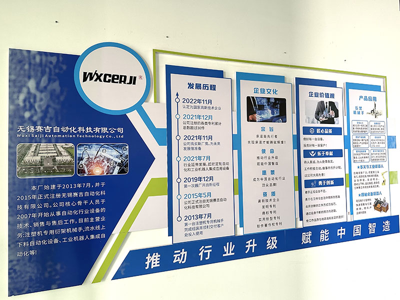 無錫賽吉自動化科技有限公司始建于2013年5月。公司幾位核心骨干人員在2007年到2009年分別入行從事注塑機專用機械手研發(fā)、設計、機電、組裝、銷售與售后工作,目前企業分別有三大塊經營項目:自動化設備(數控車床、注塑機專用取件機械手為主)設計、生產、銷售與服務。